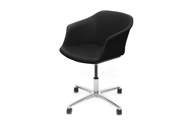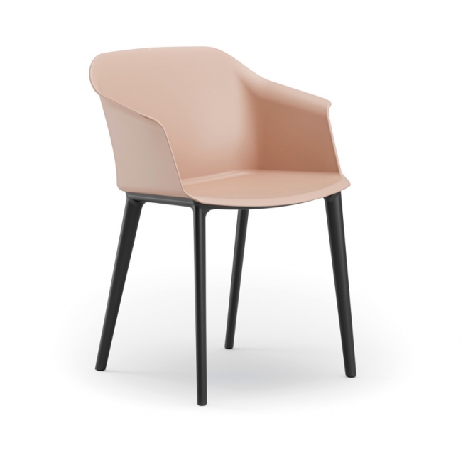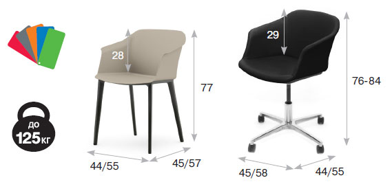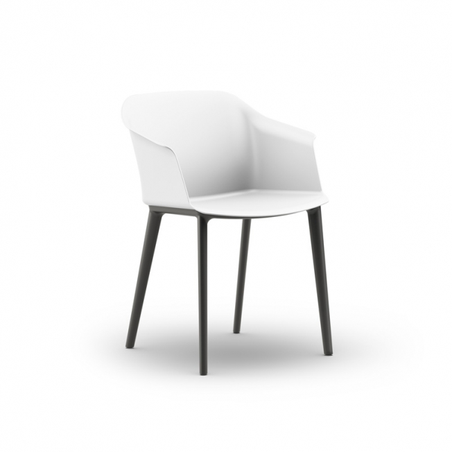 Стройный корпус из пластика, гибкий каркас и слегка изогнутая форма делают кресло Corfu одновременно удобным и располагающим. На выбор два варианта исполнения: в натуральной коже на металлической 4-лучевой базе или в пластике на четырех черных опорах.