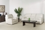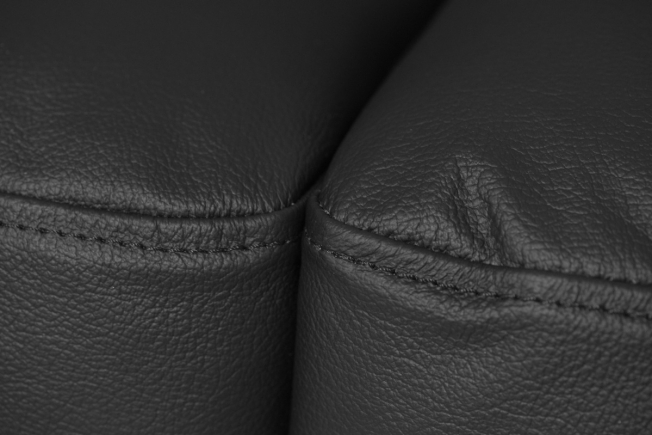 Модель Ella в складском ассортименте представлена трехместным диваном и креслом, выполненными в черной или бежевой коже. На заказ возможно изготовление в различных цветах ткани, экокожи и кожи, а также производство двухместного дивана.