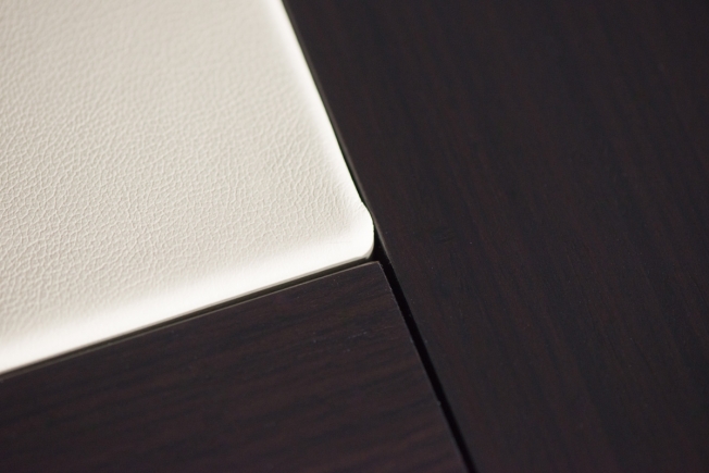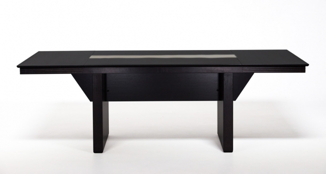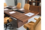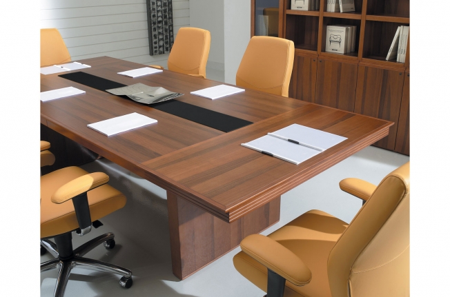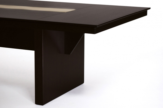 Материалы столешницы стола для переговоров аналогичны письменным столам. Центральная часть столешницы стола для переговоров также инкрустирована кожей.