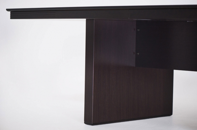 - Опоры стола для переговоров выполнены из тамбурата толщиной 90 мм с завершающими панелями из массива дерева толщиной 19 мм с закруглением радиусом 15 мм