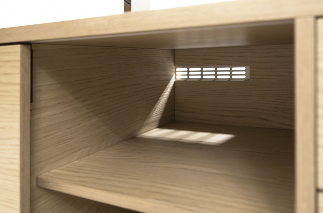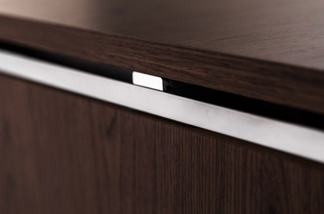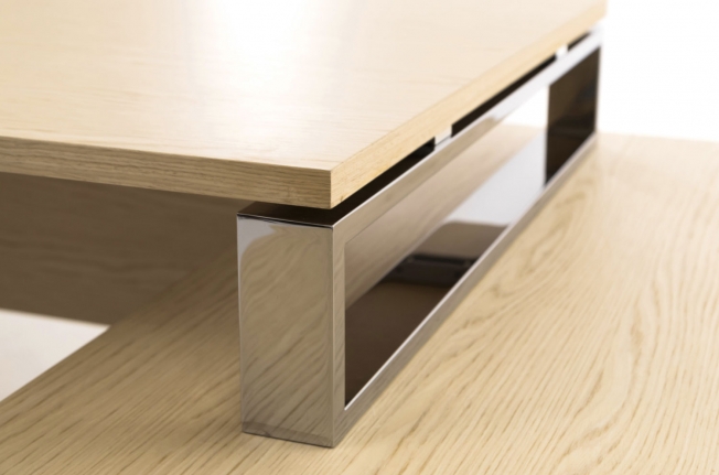 - Металлические О-образные опоры, сечением 70х20 мм (производство — Италия). Варианты опор — стандартной высоты 73 см и низкие 15,6см для опорной тумбы. Цветовые решения — хромированные или черные (порошковая покраска). Компенсаторы неровности пола до 15 мм. Опоры могут быть дополнены шпонированной вставкой в цвете коллекции.