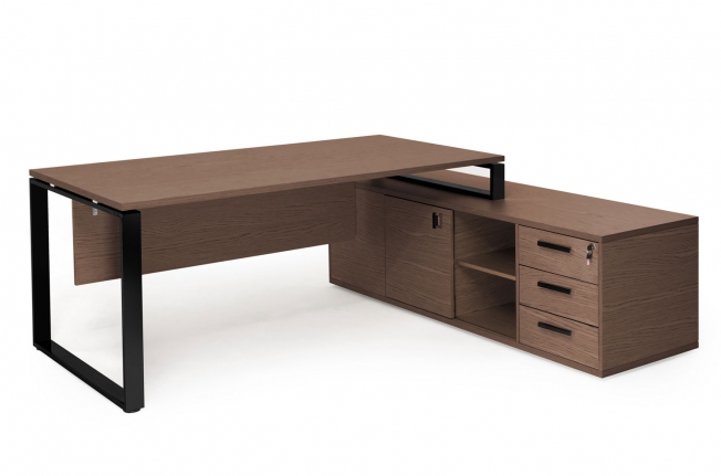 - Два варианта письменных столов — на металлических опорах и на опорной тумбе