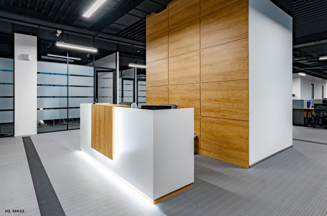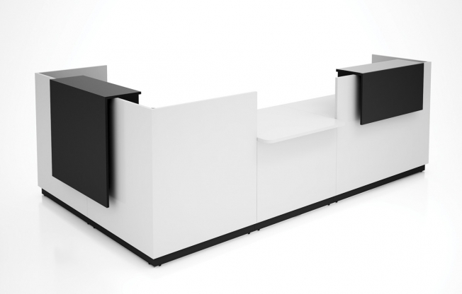 Модули крепятся при помощи усиленного крепежа, который позволяет не использовать опоры при длине до трех модулей — с внутренней стороны приемная стойка очень просторная и позволяет комфортно разместиться нескольким сотрудникам.