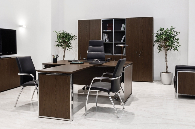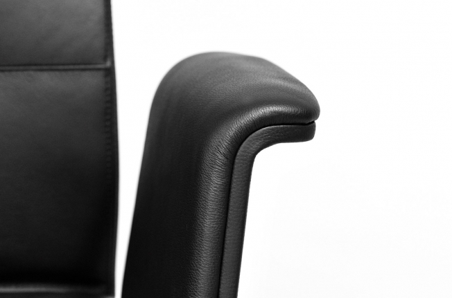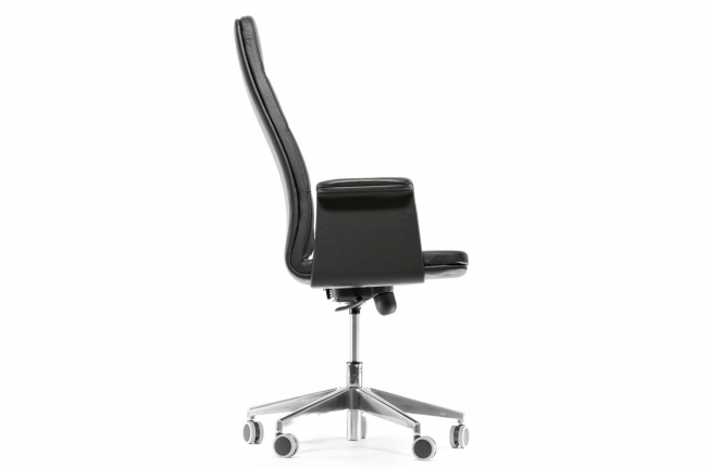 Коллекция Karl представлена двумя креслами: с высокой спинкой для руководителя и с низкой спинкой для брифинг-зоны или зоны переговоров. В складской программе кресла доступны в черной коже, на полированной металлической крестовине с колесами для твердых напольных покрытий. Кресло снабжено механизмом качания с функцией «анти-шок», регулировкой по высоте и регулировкой жесткости качания по весу сидящего.