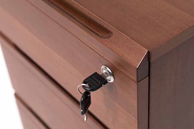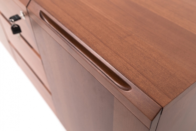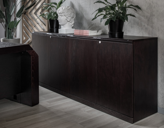 Естественная элегантность и геометрическая завершенность форм. Превосходное качество натурального шпона в цветах дуб ферро и итальянский орех.