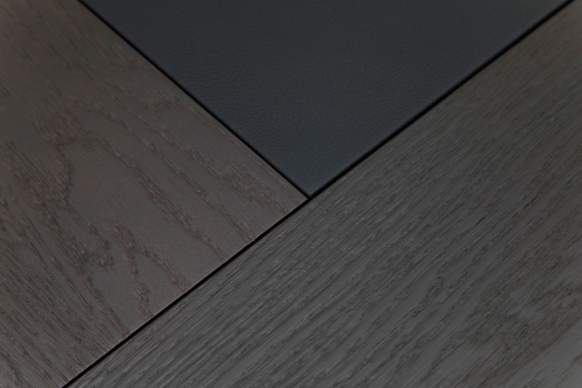 Центральная часть столешницы – кожаная вставка черного цвета. Вставка в бежевом цвете - на заказ, срок производства 4 недели.