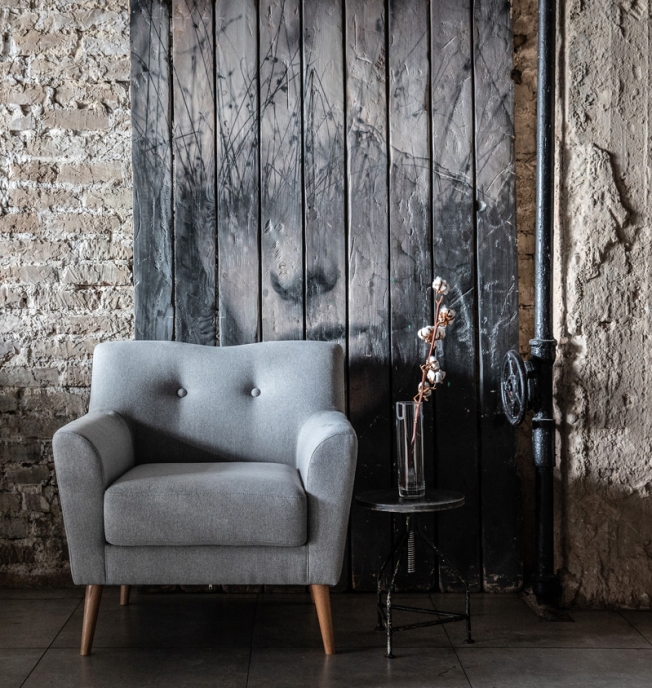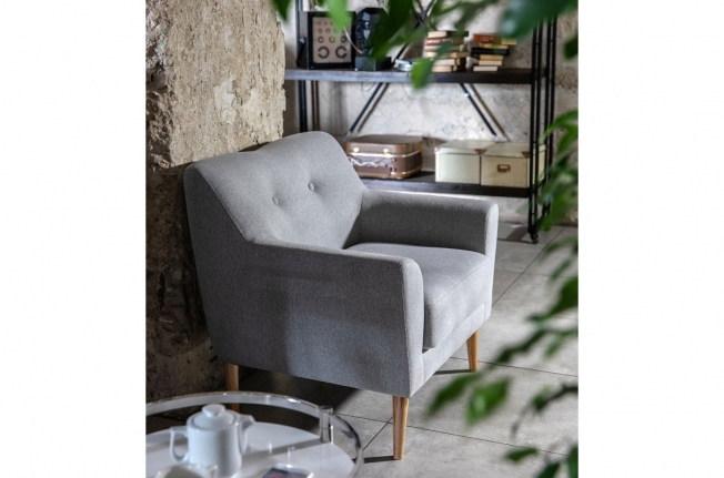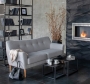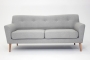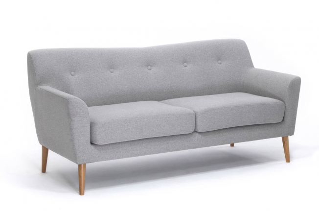 Коллекция Lamella в складском ассортименте представлена трехместным диваном и креслом с тканевой обивкой. Опоры - натуральный бук. Обивка — жаккардовая ткань серого цвета, состав — 100% полиэстер, мягкая на ощупь и износостойкая (более 80 000 циклов на тесте Мартиндейла). Подушки декорированы пуговицами.