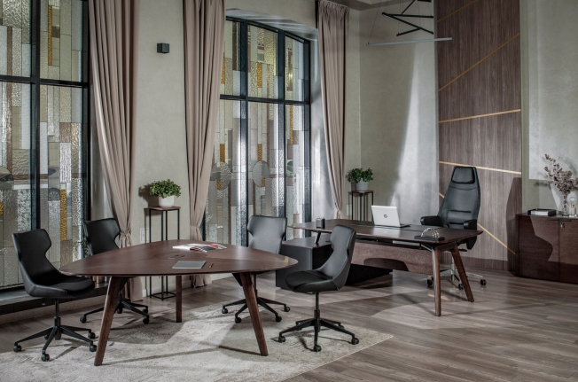 Кабинет Rail это воплощение утонченности и респектабельности. В нем удалось соединить статус, чувство собственного достоинства и комфорт. Стиль кабинета лаконичен, но в то же время построен на игре природной фактуры шпона. Здесь нет места категоричной прямолинейности: мягкие силуэты, сглаженные углы, плавные линии.
