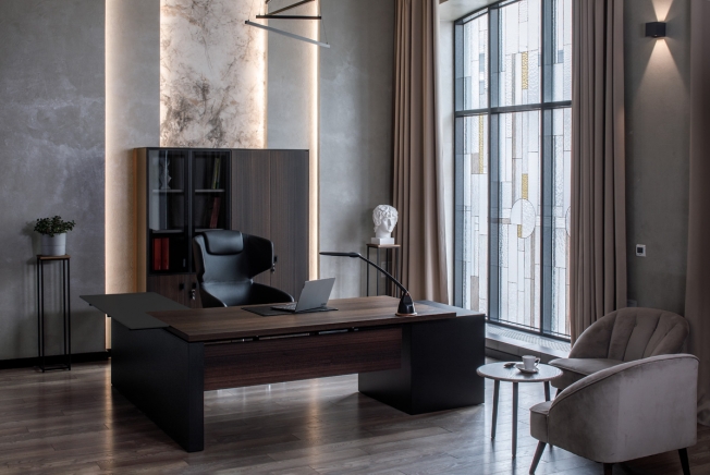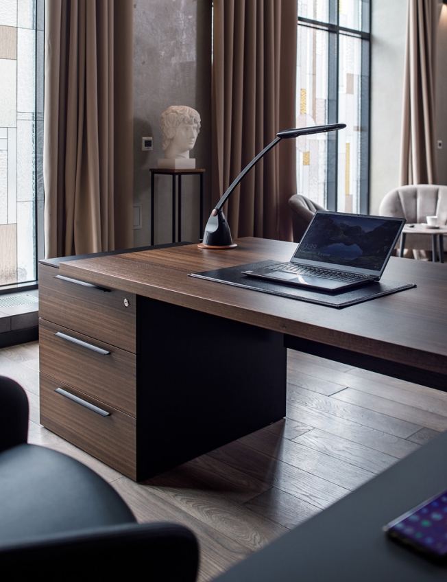 Стол Renz, покрытый шпоном эвкалипта – эстетичный и основательный - призван стать центральным элементом офиса.