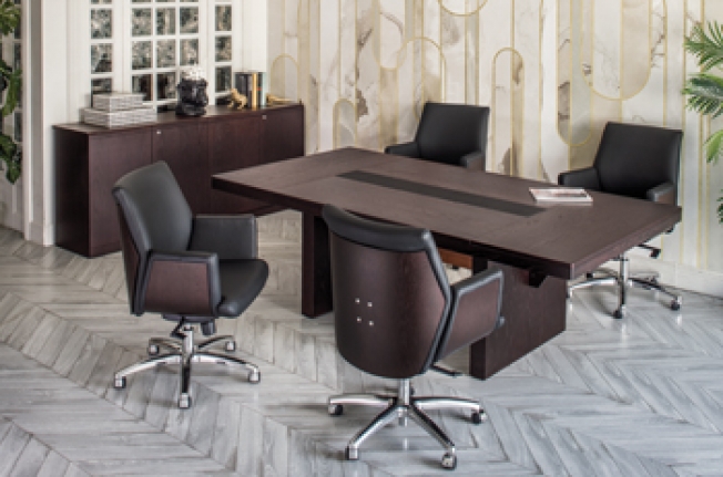 Кабинет Riviera для руководителей высшего ранга. Достойный выбор ценителей престижа, комфорта и элегантности. Строгая лаконичность линий идеально гармонирует с декором теплых тонов ценных пород дерева, используемых при отделке.