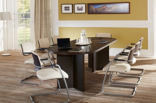 Столы для переговоров представляют собой наборную систему. Из столешниц различной длины, дополнительных элементов к столешнице и опор можно собрать столы для переговоров любых необходимых вам форм и размеров.