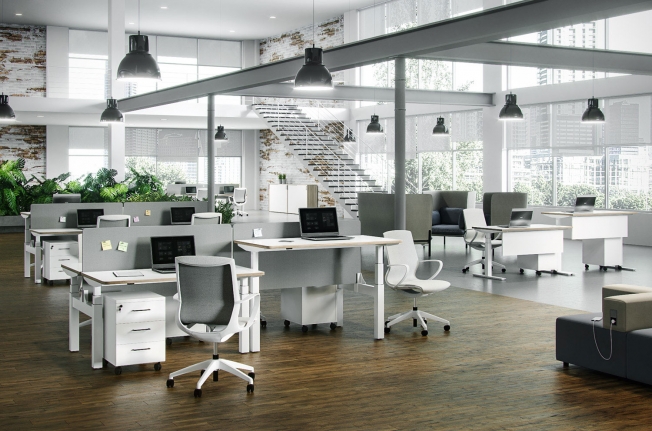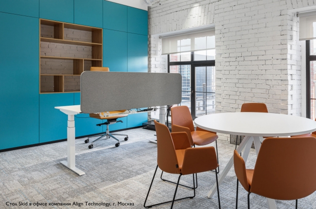 Решить задачу по созданию комфортной и эргономичной зоны рабочих мест для сотрудников поможет коллекция регулируемых по высоте столов Skid. Легко и быстро изменяя высоту стола, вы можете работать как сидя, так и стоя, меняя положение в течение рабочего дня.