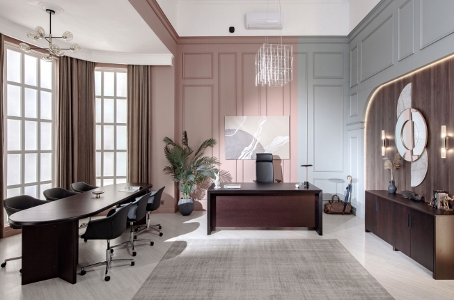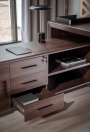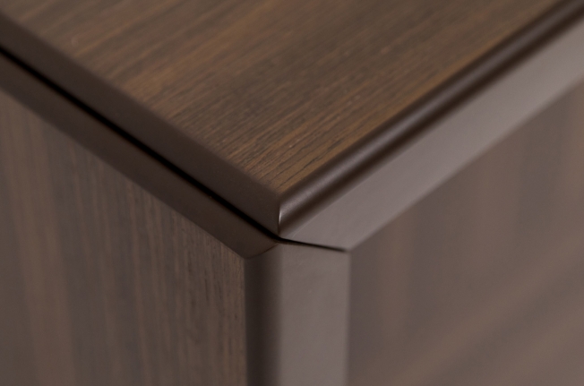 Оригинальный дизайн с соединением столешницы и боковых панелей под углом в 45° выделяет Tempio среди других кабинетов для руководителей высокого ранга. Неповторимый рисунок шпона из натуральной древесины поможет создать деловой, но в то же время уютный офис.